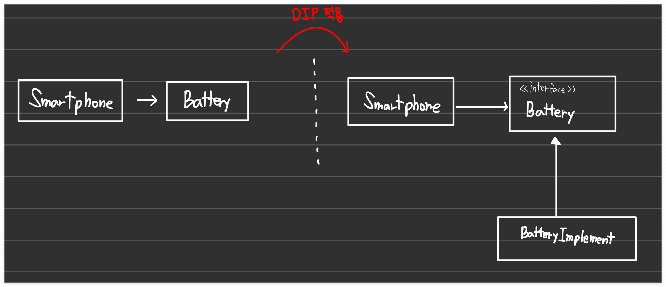 그걸 알기 위해서는 먼저 스마트폰이 배터리의 구현체에 의존하는 코드를 봐야 합니다!